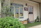 道路の右側にアンティークのドアと飾り窓が目印です。